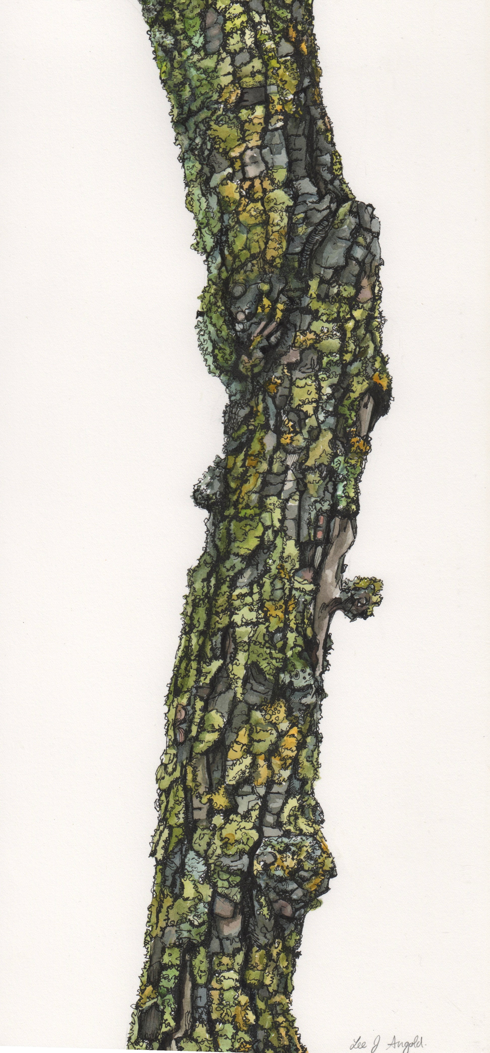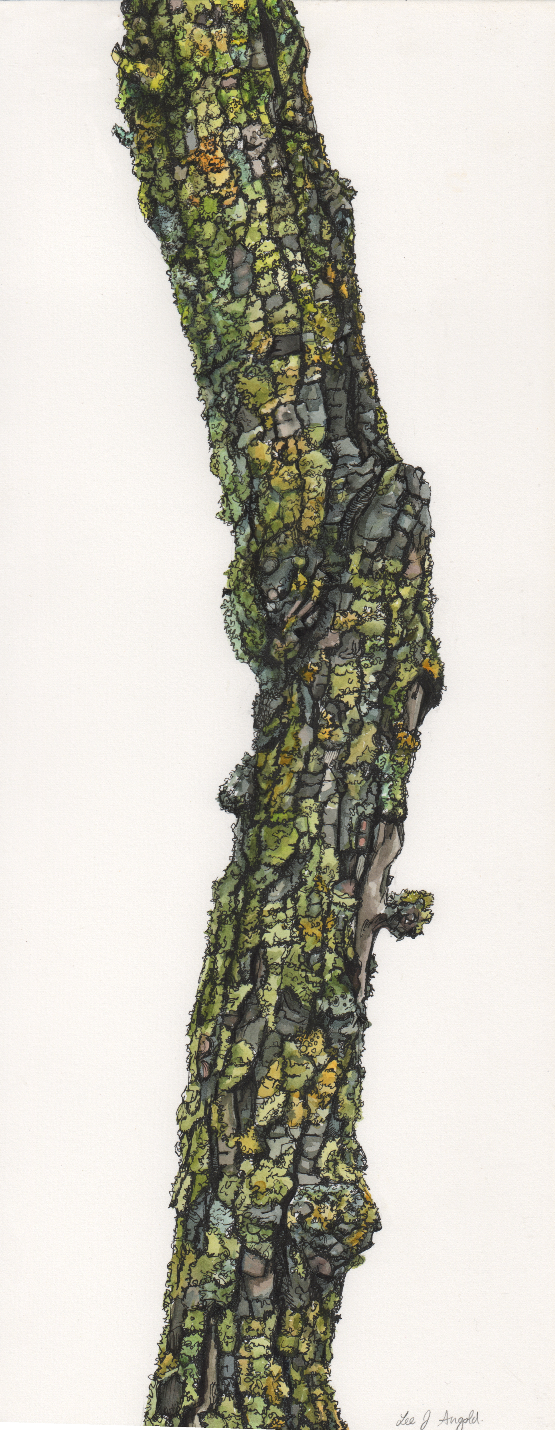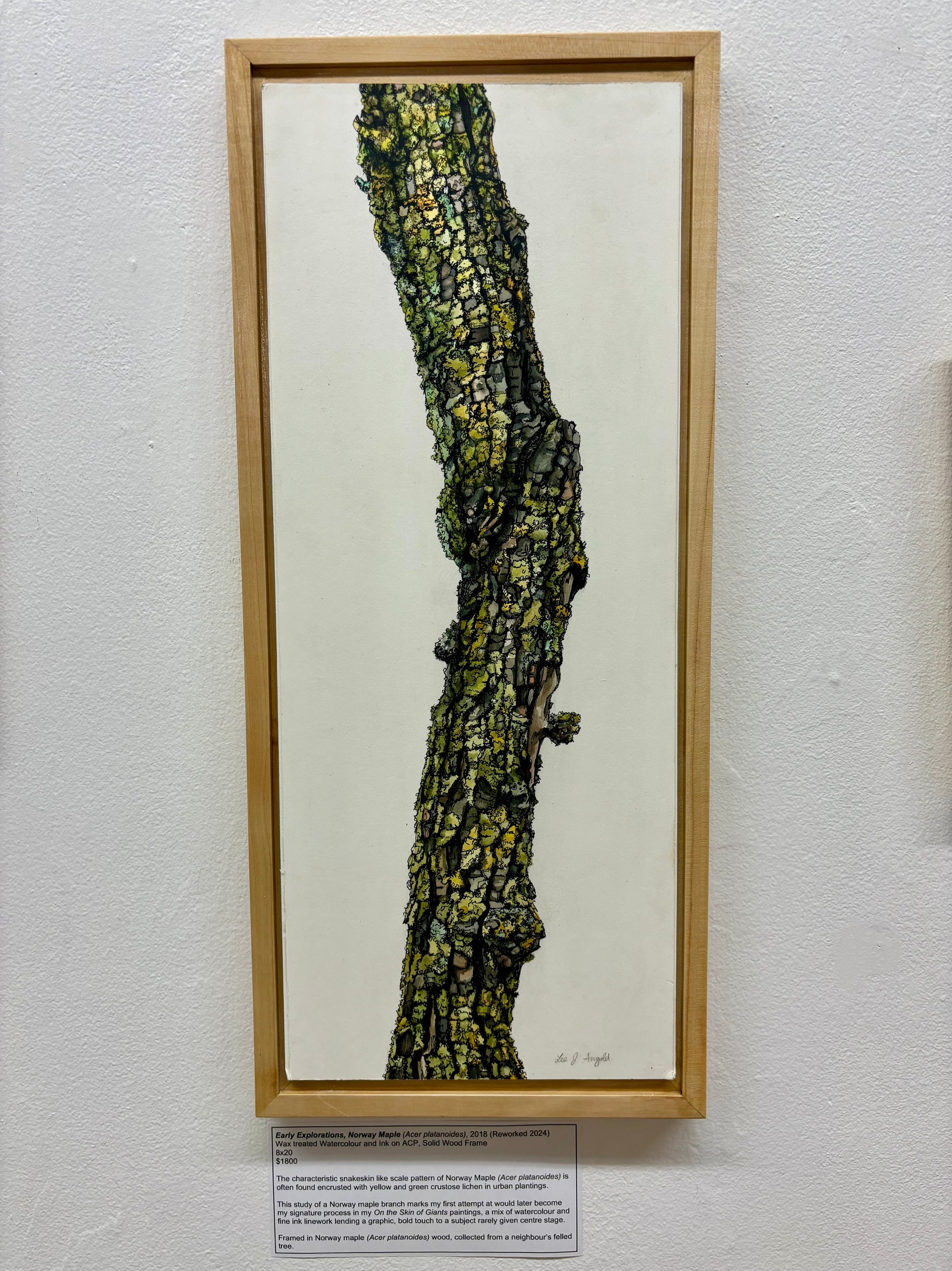 This study of a Norway maple branch marks my first attempt at would later become my signature process in my On the Skin of Giants paintings, a mix of watercolour and fine ink linework lending a graphic, bold touch to a subject rarely given centre stage.