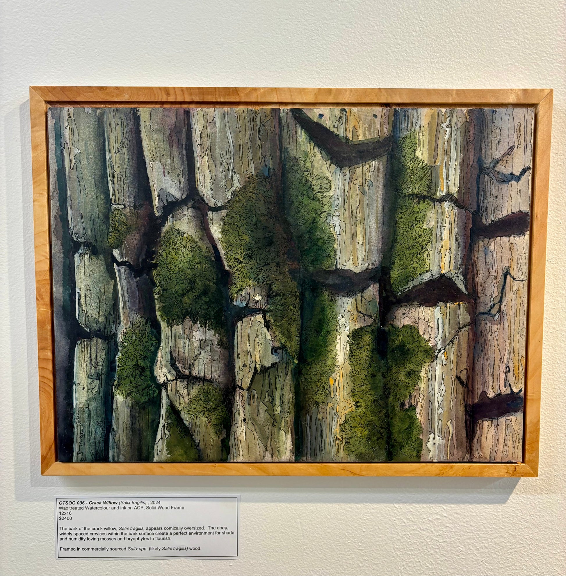 Framed in commercially sourced Salix spp. (likely Salix fragilis) wood.